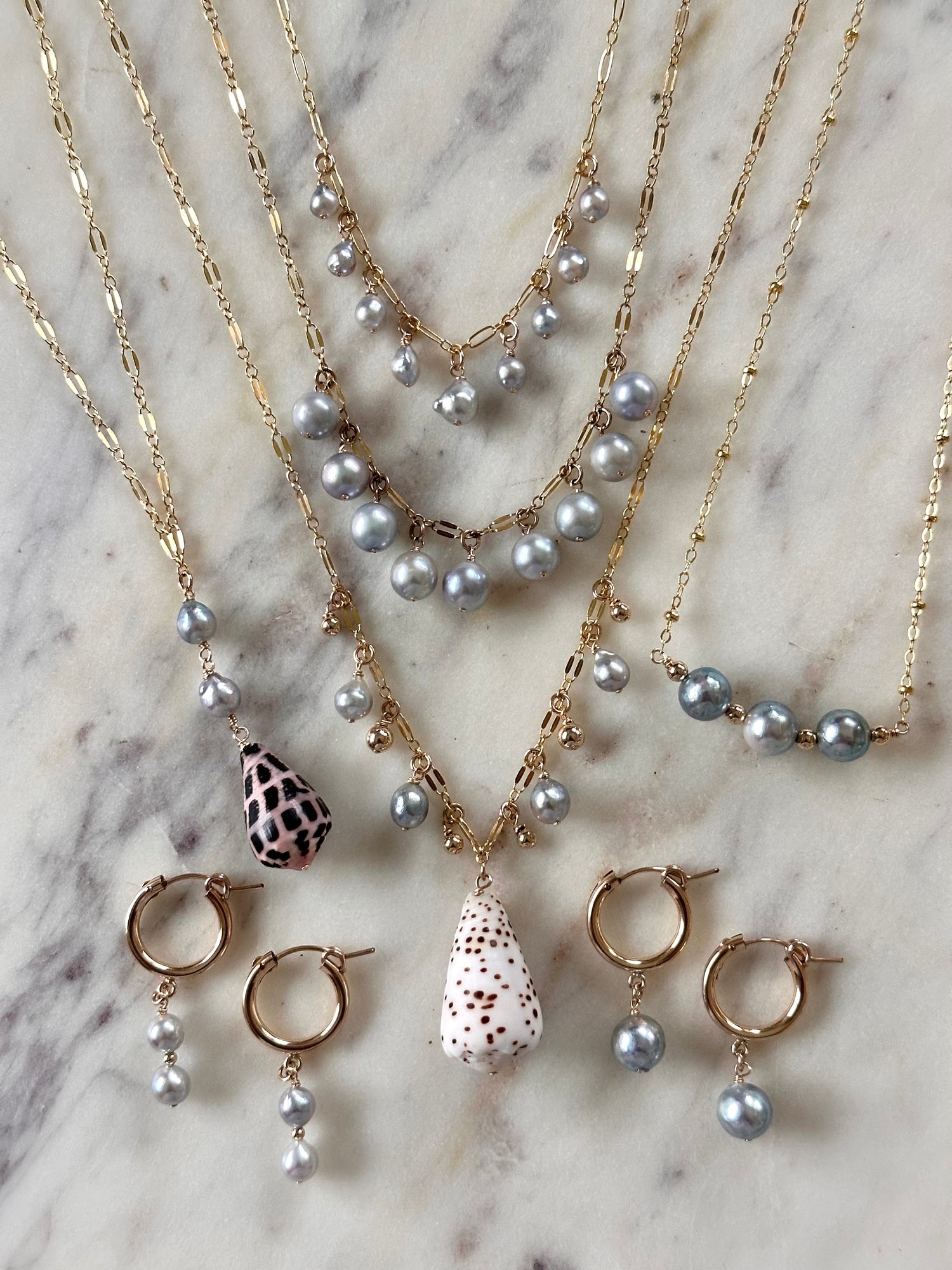 A collection made for barefoot days and summer lovers. Think island mornings, salty skin, slow days, and jewelry that feels like a love letter to summer. Each piece is handmade with Hawai‘i shells and luminous pearls—grounding you in ocean energy, ease, and intention.