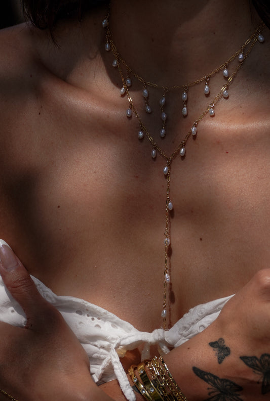 The ultimate shell + pearl edit! Made with 14kgf materials for long lasting use and made for your summer adventures in and out of the ocean. Designed for the girls who move through life unbothered, golden, and free—soaking in every long, uninterrupted summer moment.