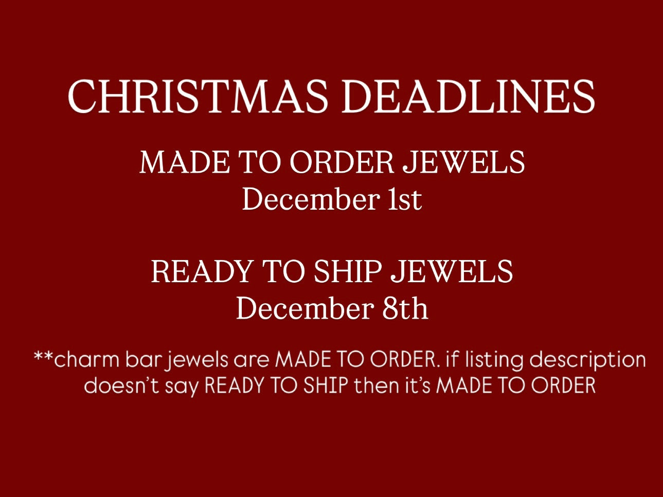 CHRISTMAS DEADLINES Made to order Jewels | DECEMBER 1st Ready to...