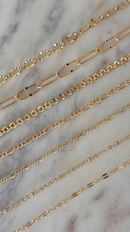 STEP ONE: Choose your chain. Choose your jewelry (if you’d like like to design a charm bracelet or necklace) Choose your length.