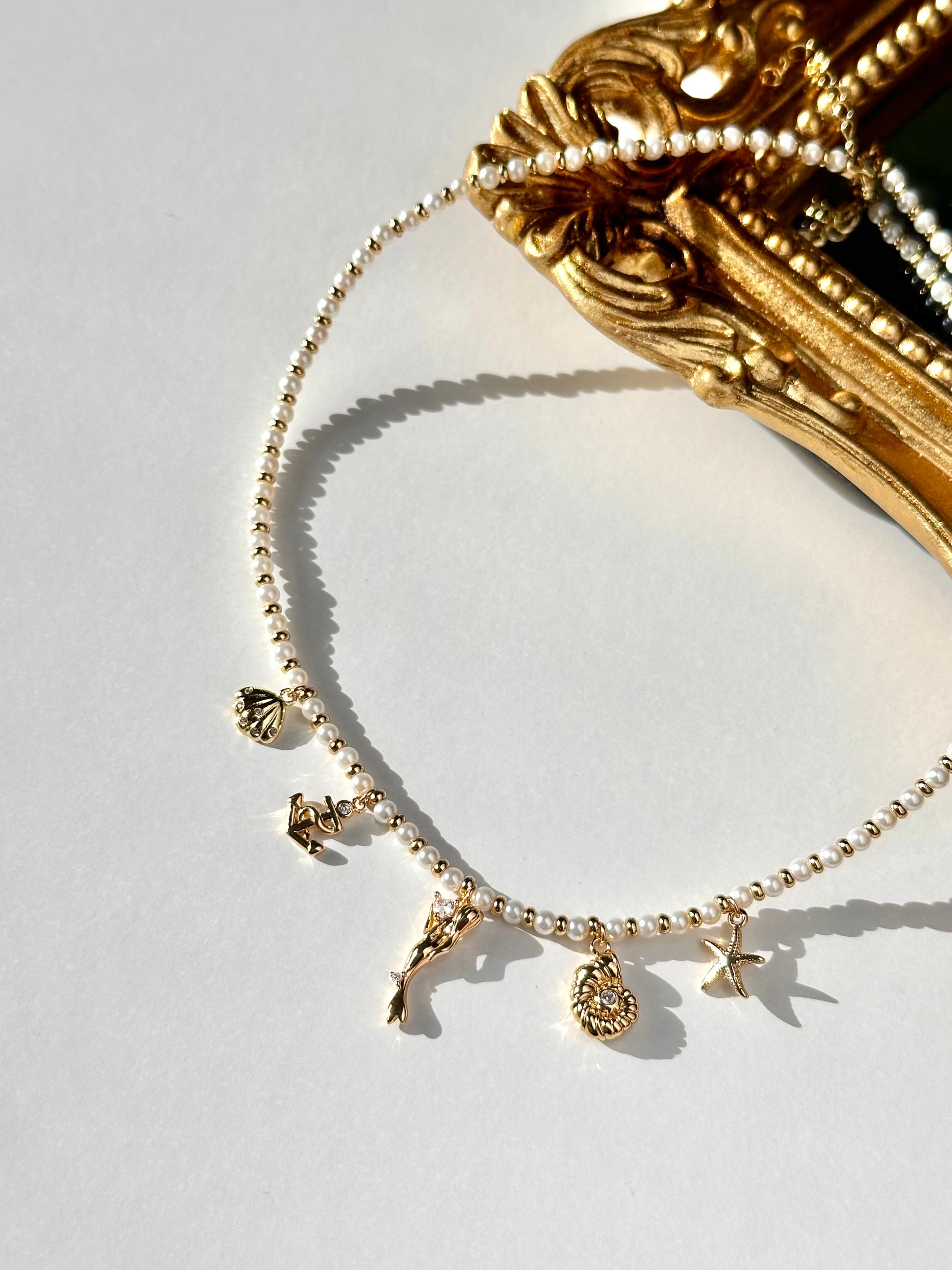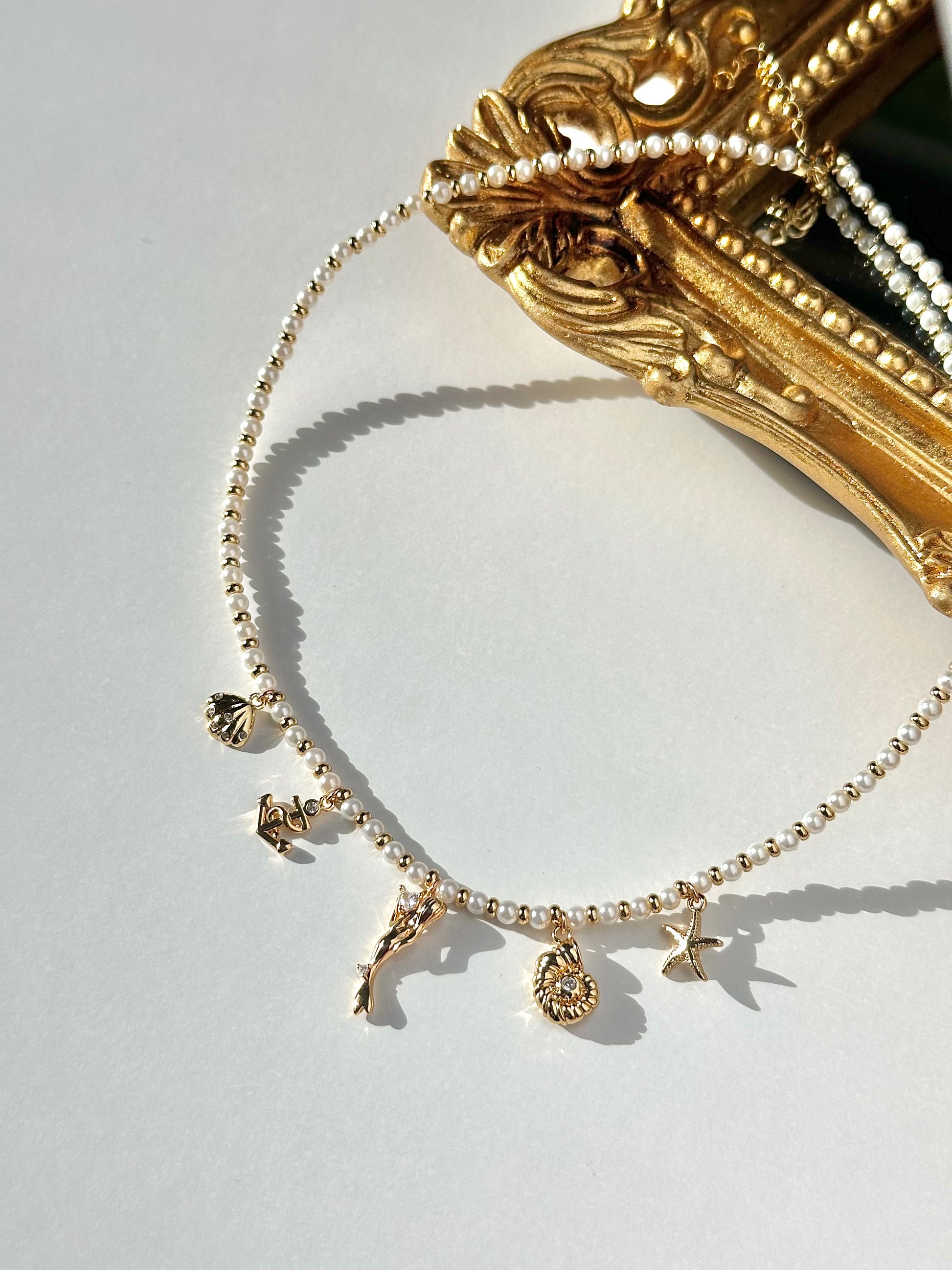 The Amalfi Charm Necklace adds beachy charm to any outfit with its pearl strand, ocean-inspired charms, and golden beads. You'll feel like you're walking on the Amalfi Coast every time you wear it. Soak up the sun (and compliments) while rocking this playful accessory.