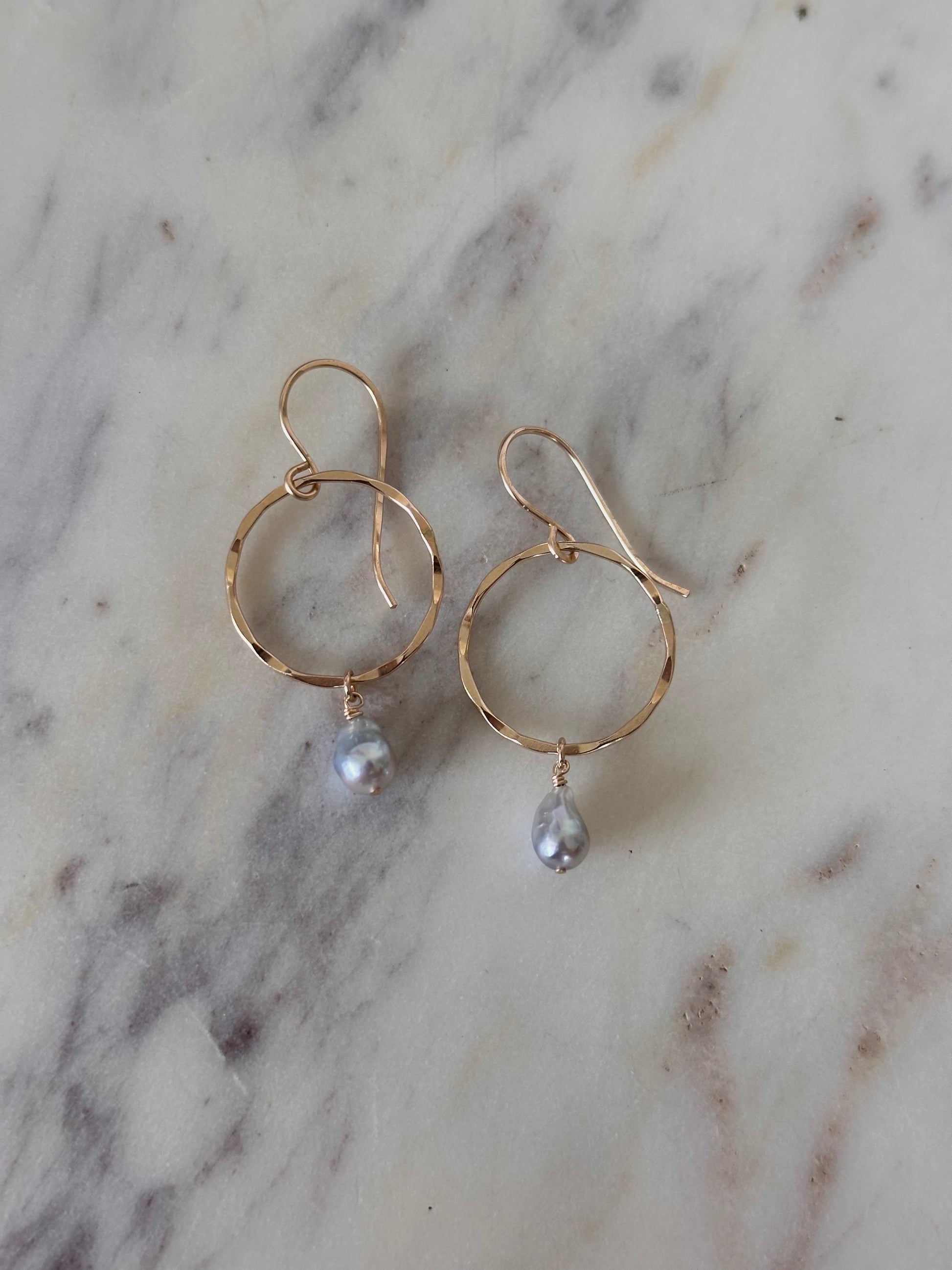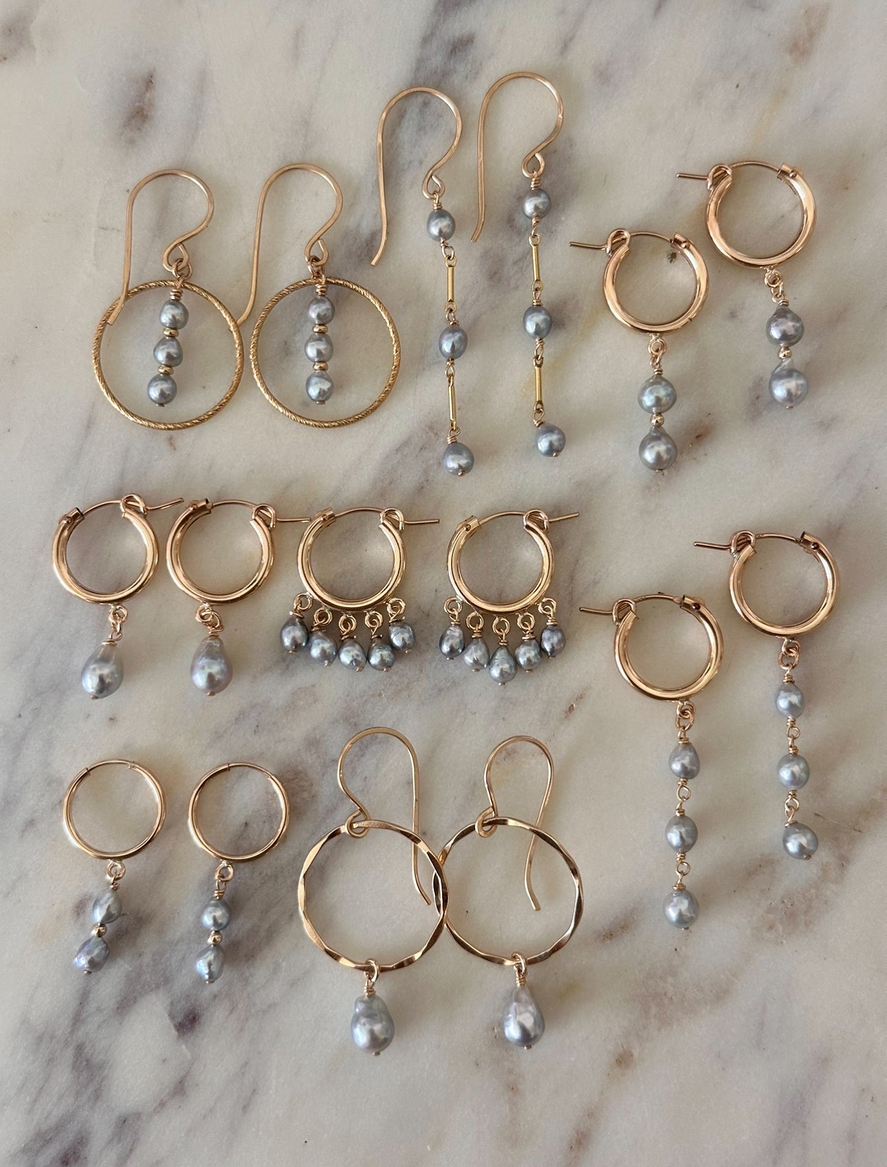 Golden hoops, island pearls. Each pair is handmade with dreamy blue Akoya pearls and 14k gold-filled hoops — a mix of shimmer, movement, and ocean magic. Light, beachy, and made to wear on repeat.