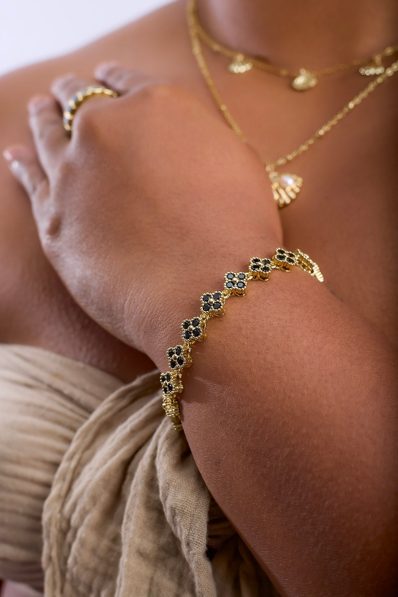 Make a statement and exude confidence with this must-have accessory. Made of a striking black clover design that adds just the right amount of shine to any outfit! A must have!