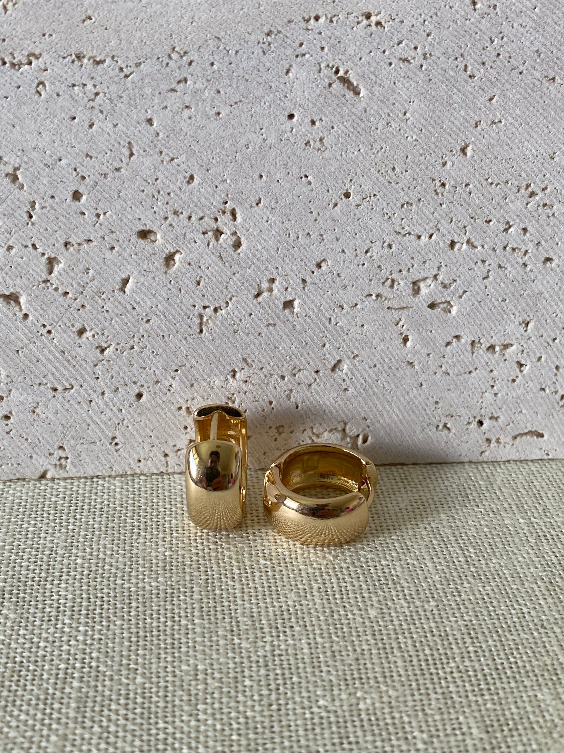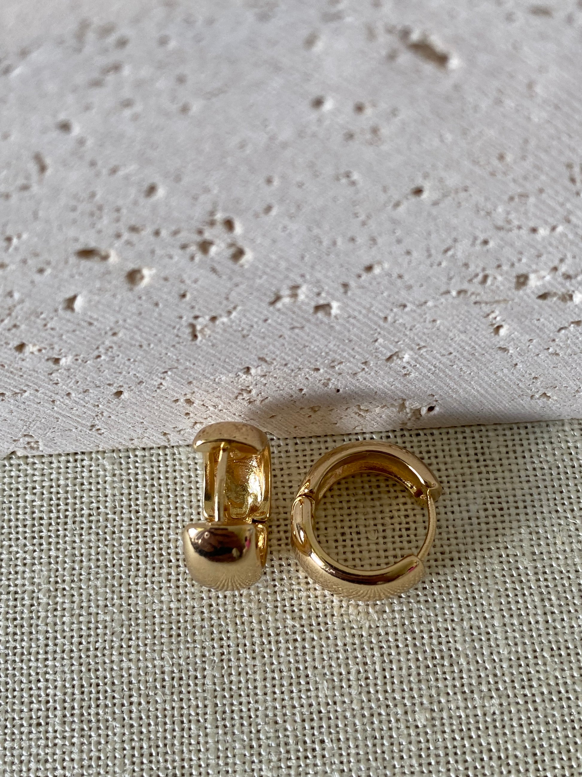 Introducing Not Your Baby Hoops: mini thick dome bold gold hoops perfect for adding subtle glamour to any look!