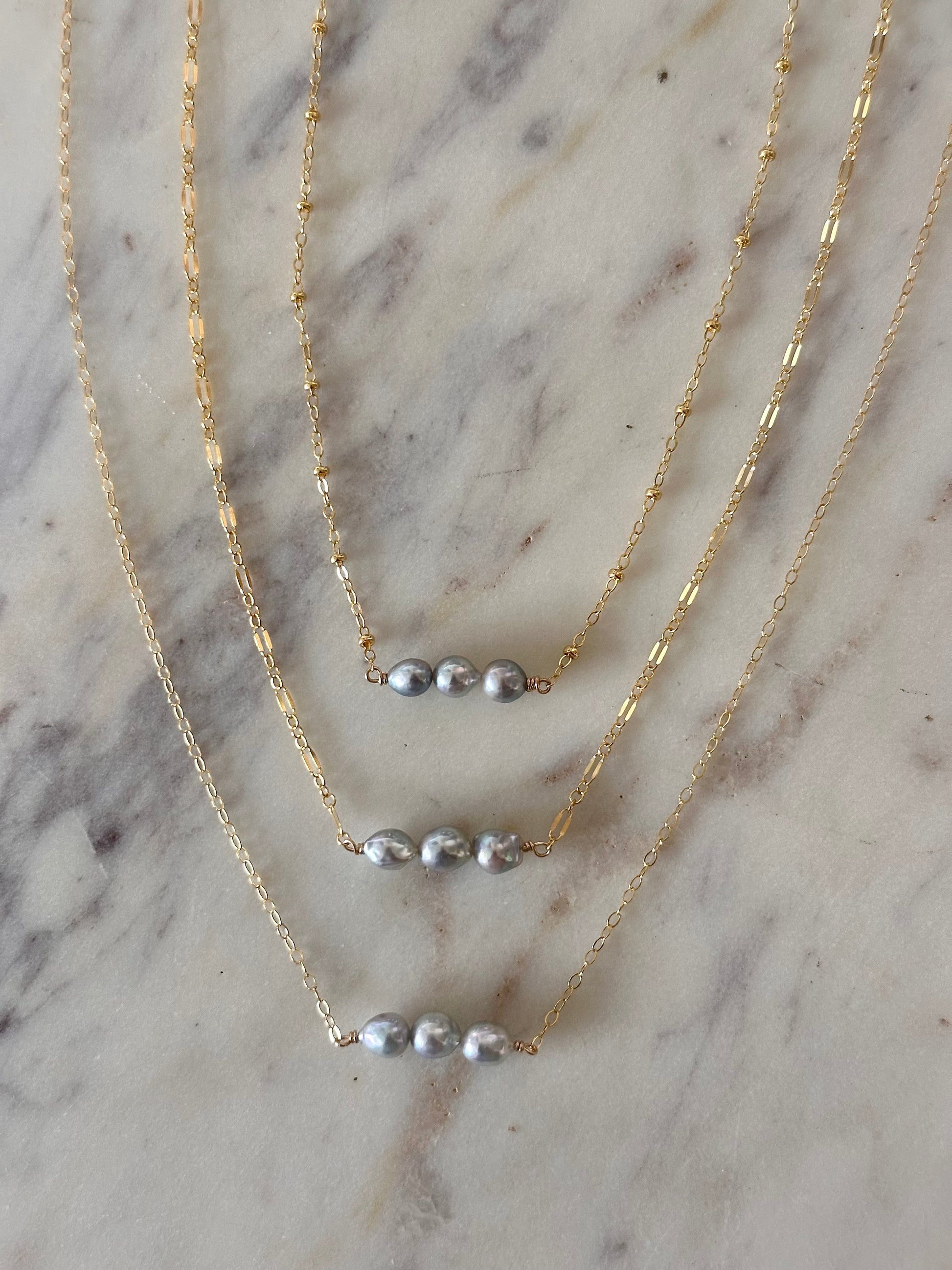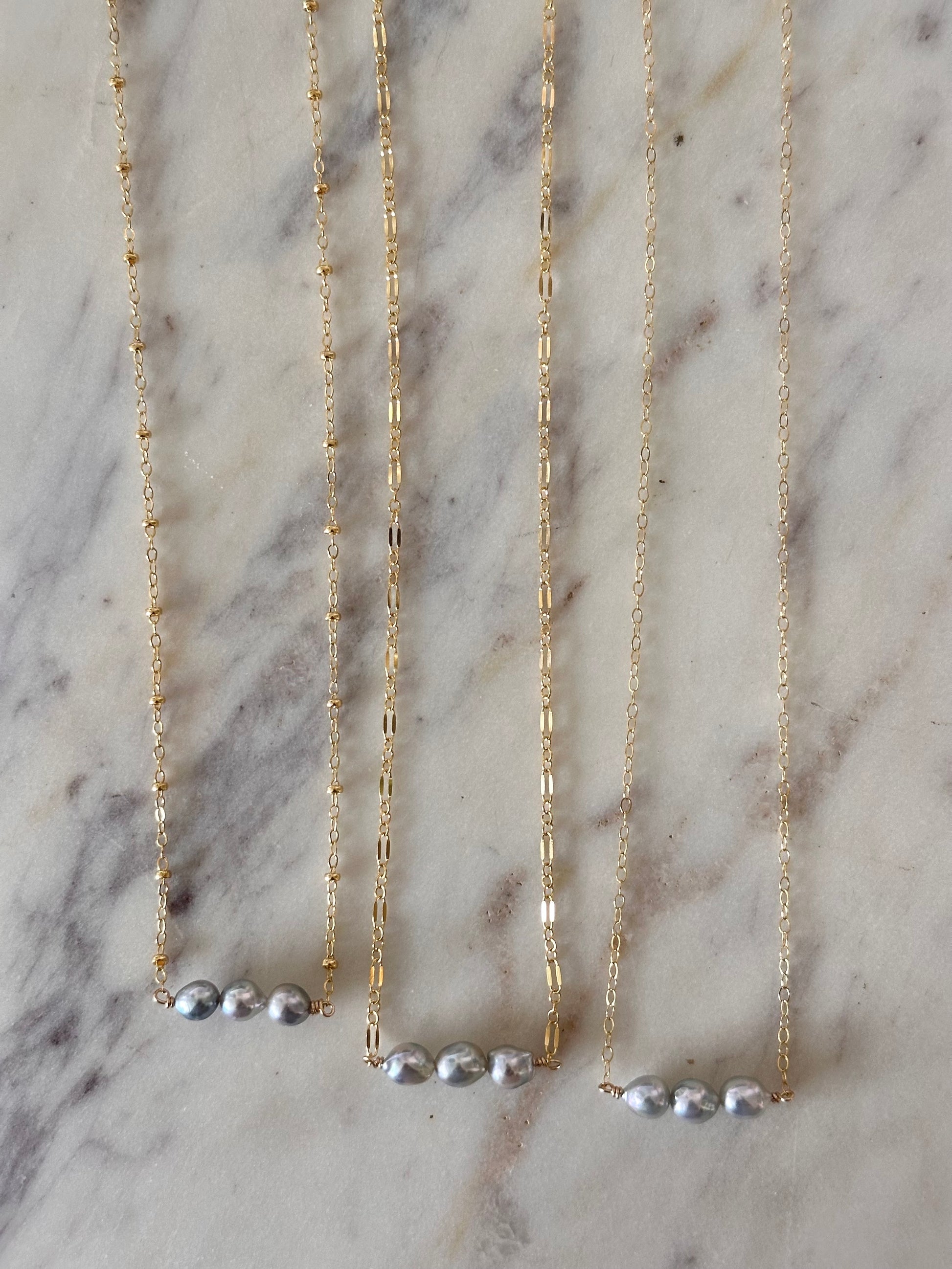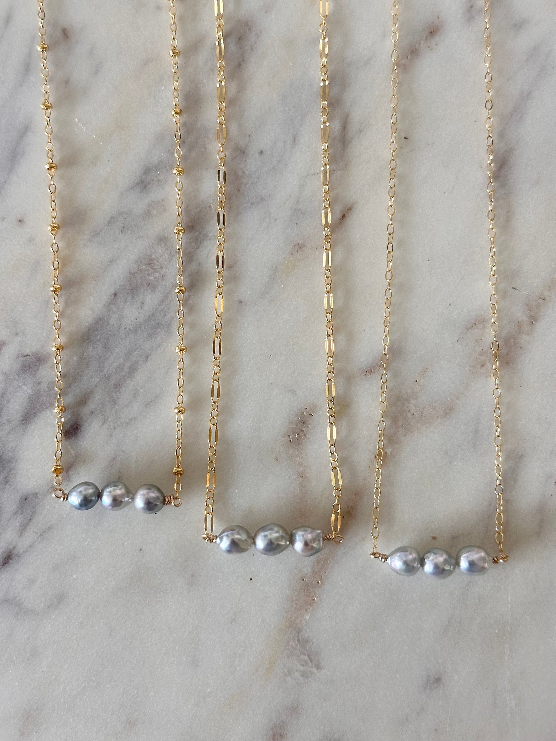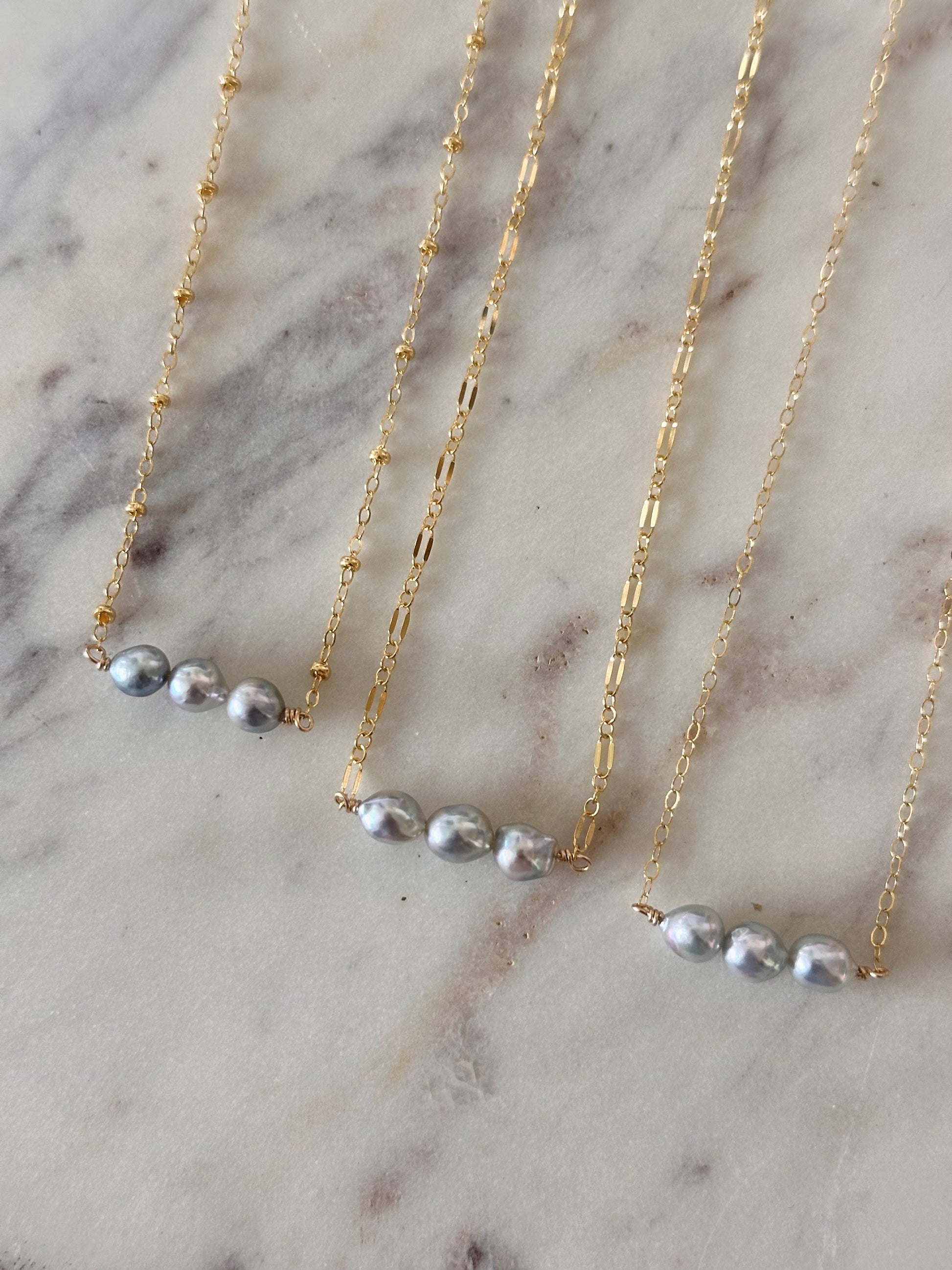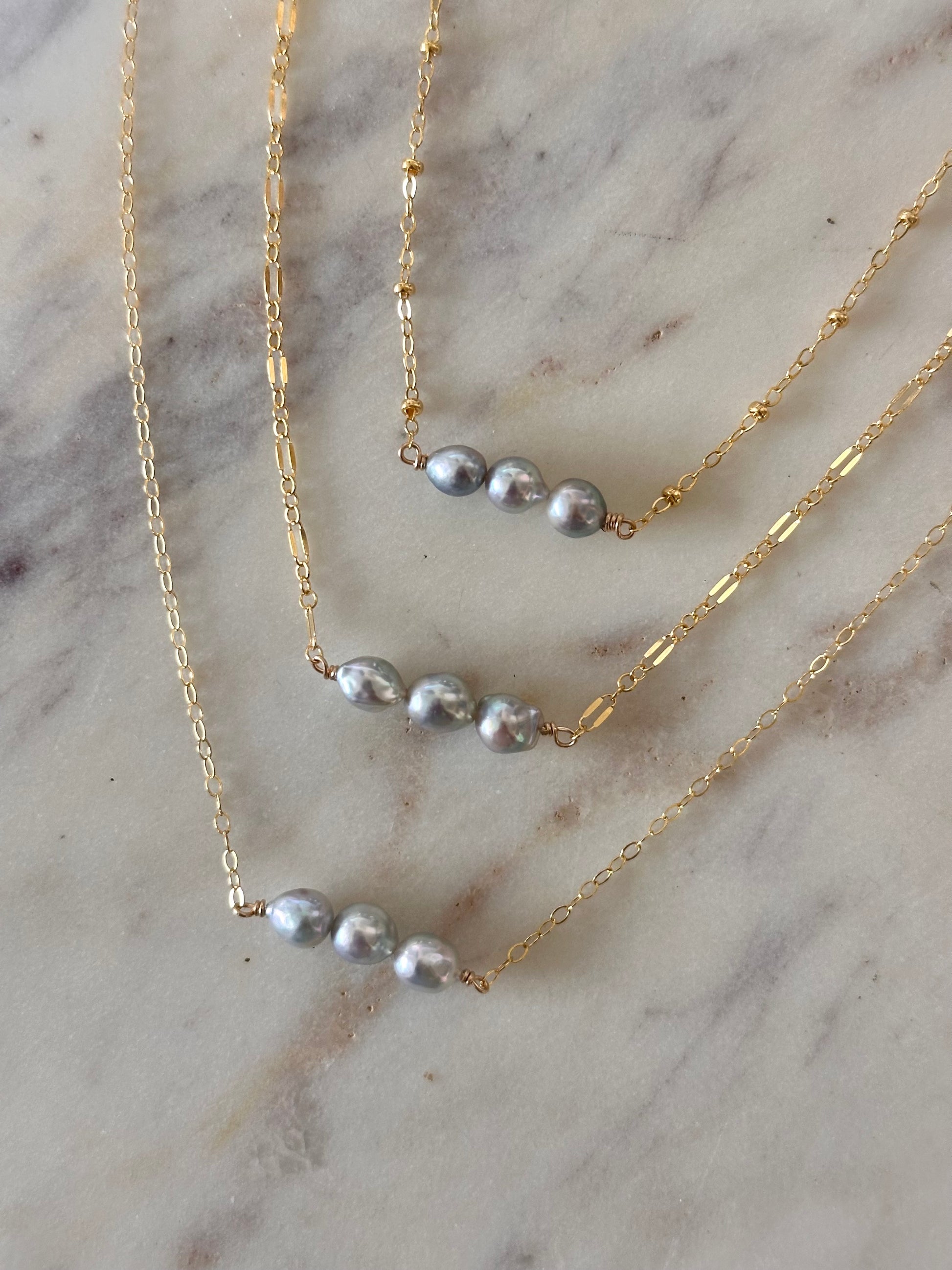 Add a touch of island luxe to any outfit with our Oasis Blue Akoya Necklace. This everyday staple features a lustrous blue akoya pearl on a 14kgf chain, perfect for dressing up or down. A must-have for any jewelry collection.