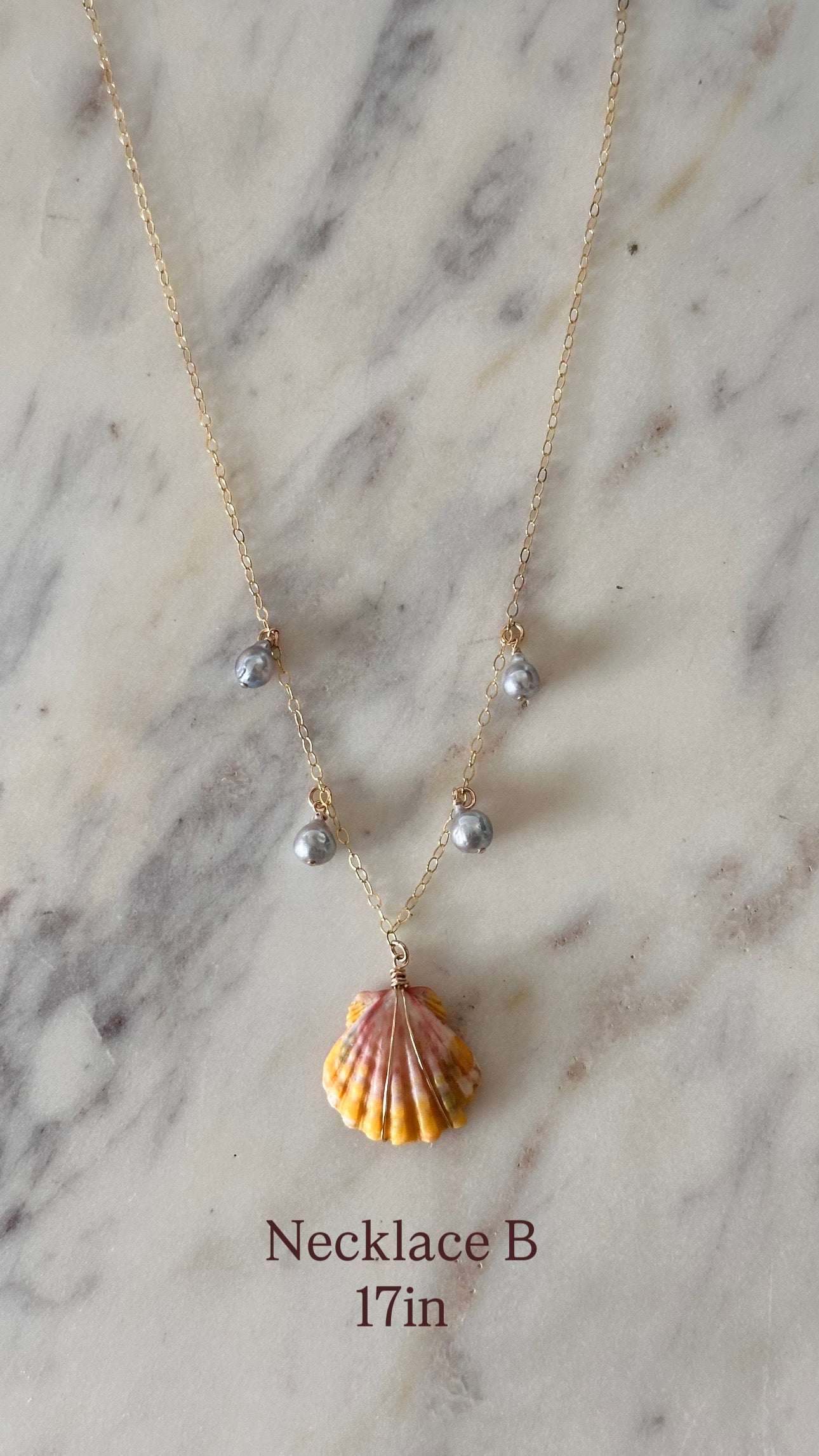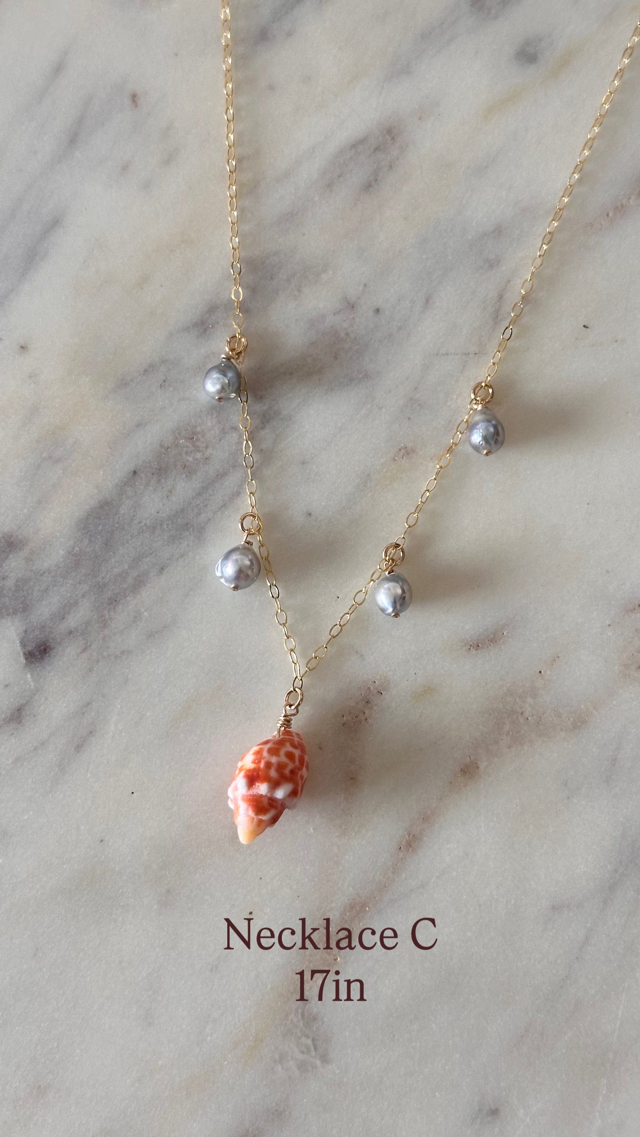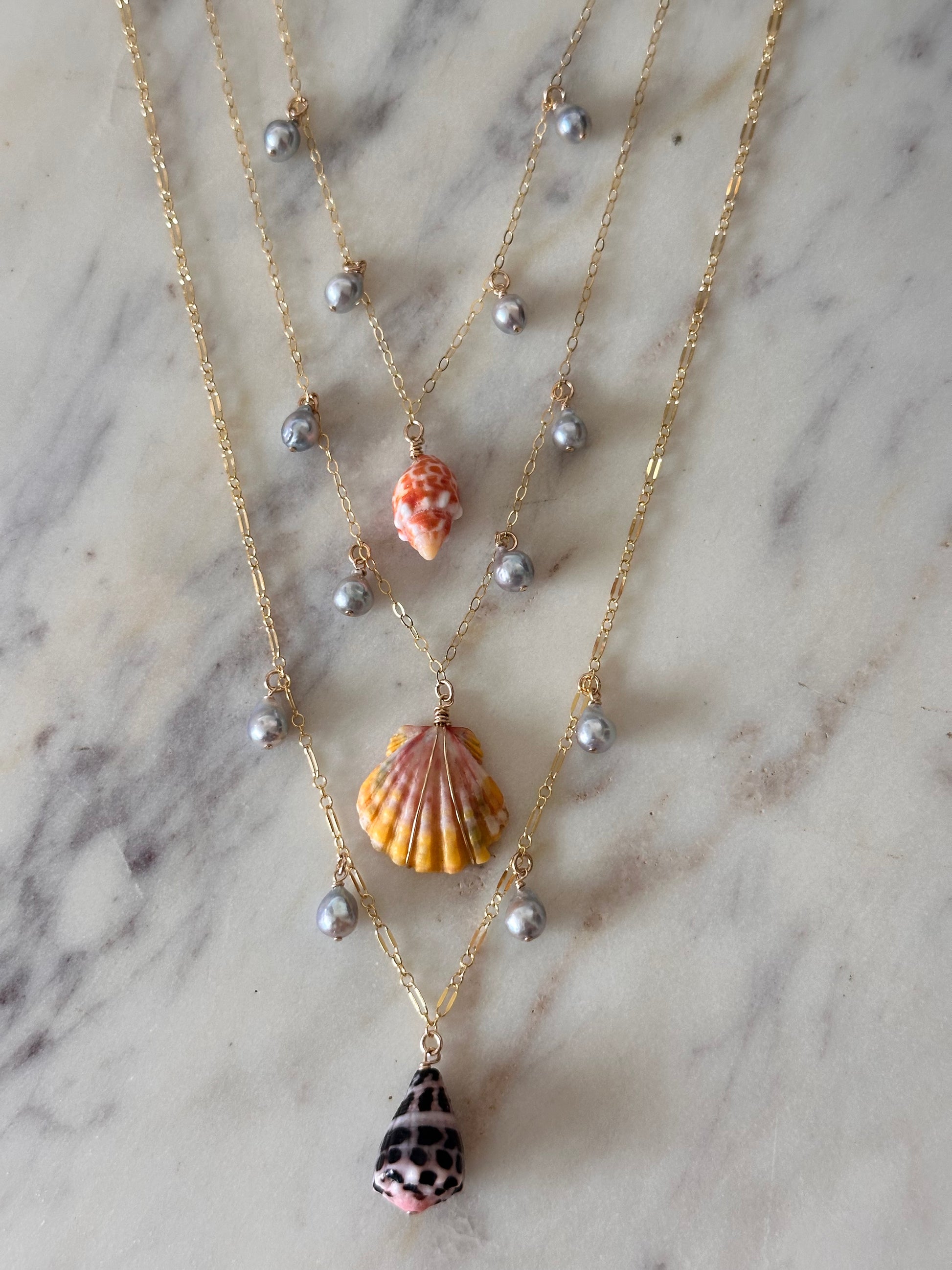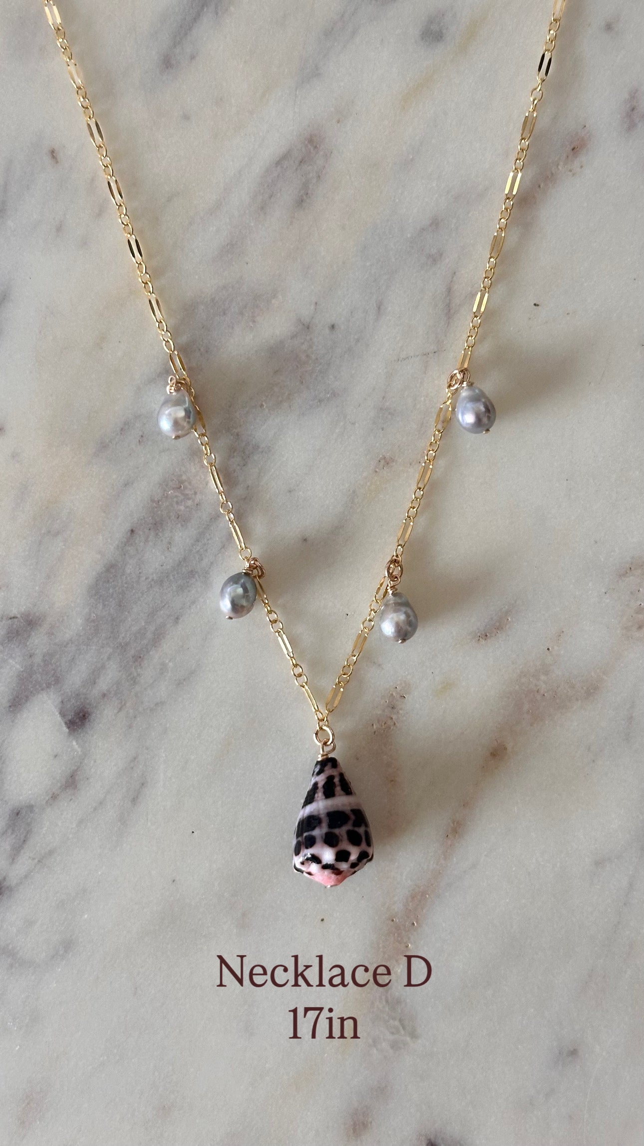 Made for golden days by the sea — these necklaces feature handpicked Hawai‘i shells paired with lustrous blue Akoya pearls, paired with 14k gold-filled chain that adds just the right touch of shine.