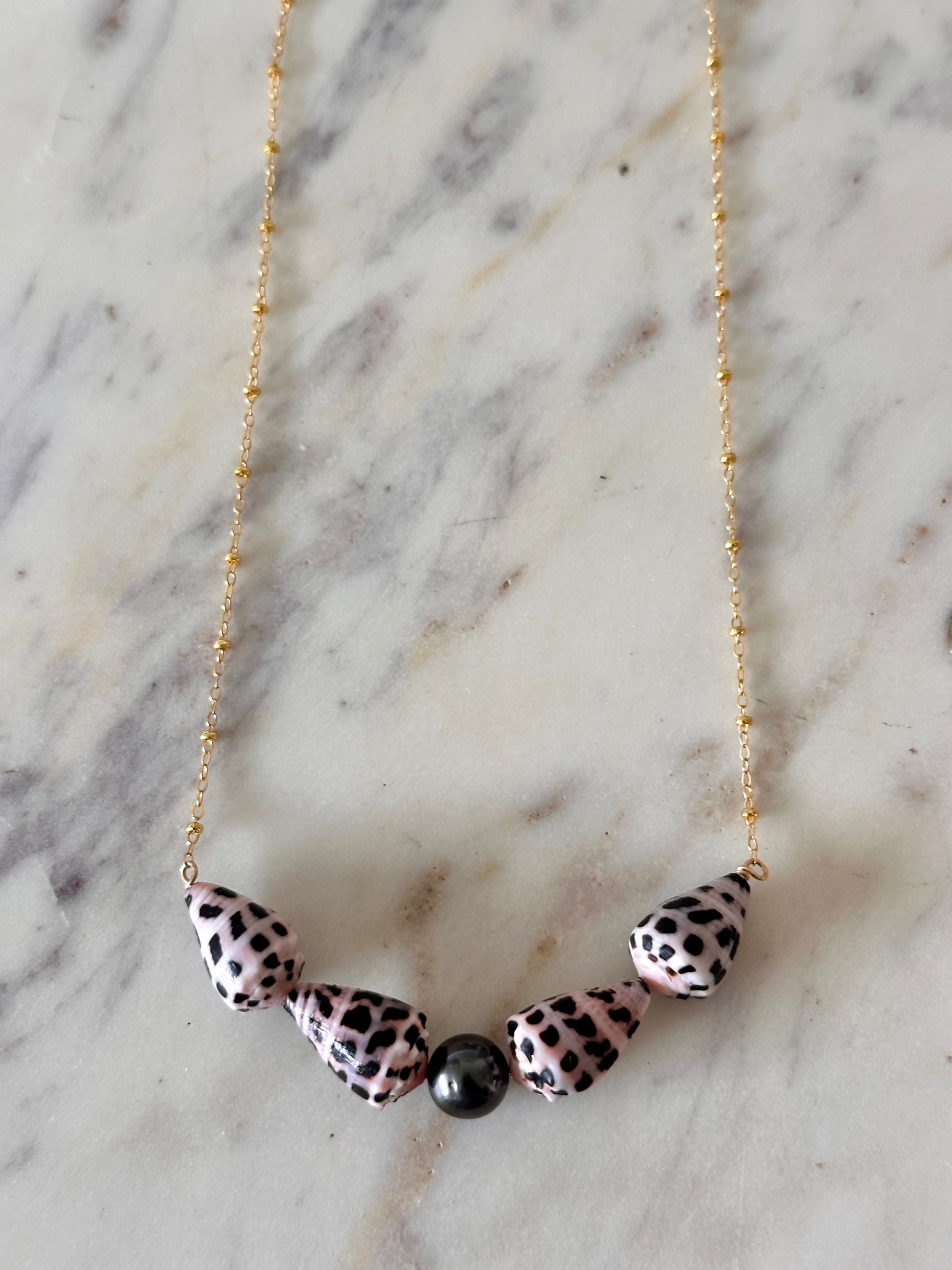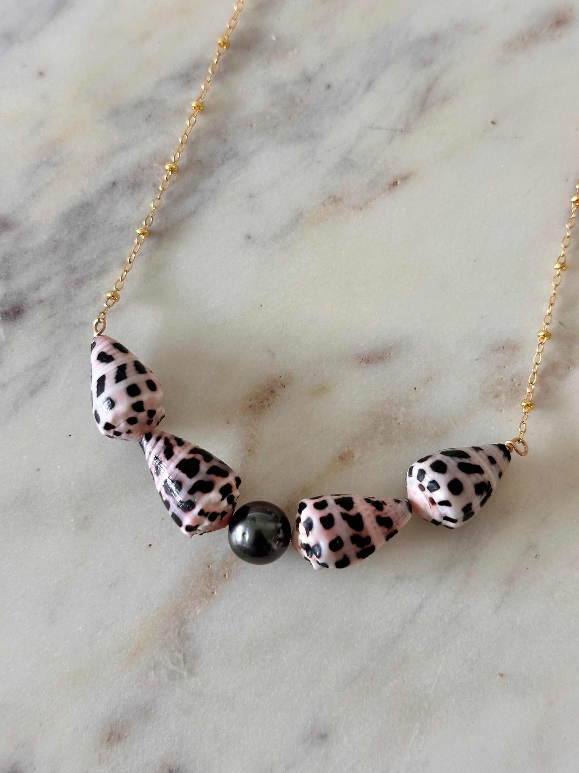 Add some personality to your outfit with our Punzip Hebrew Necklace. This statement piece features 4 hebrew shells and a beautiful Tahitian pearl, making it a unique addition to your jewelry collection. Perfect for a casual day out or a special occasion, this necklace is sure to turn heads.
