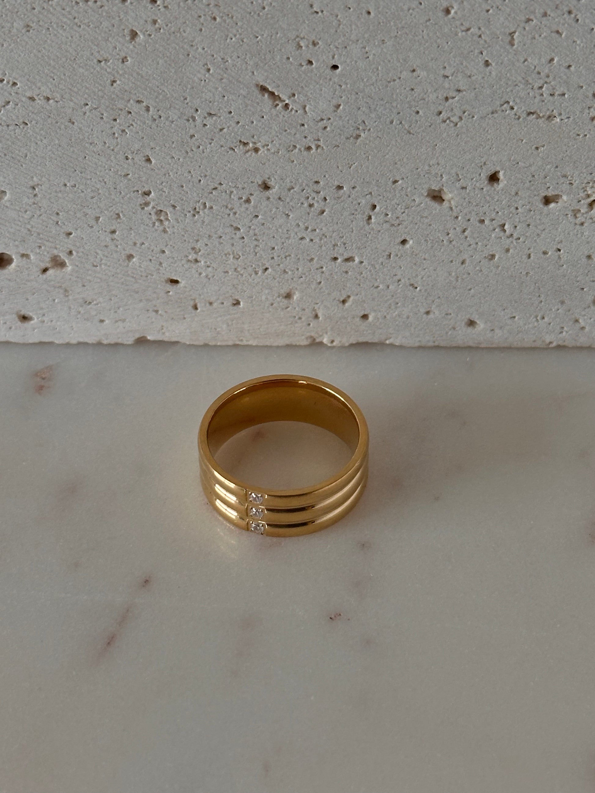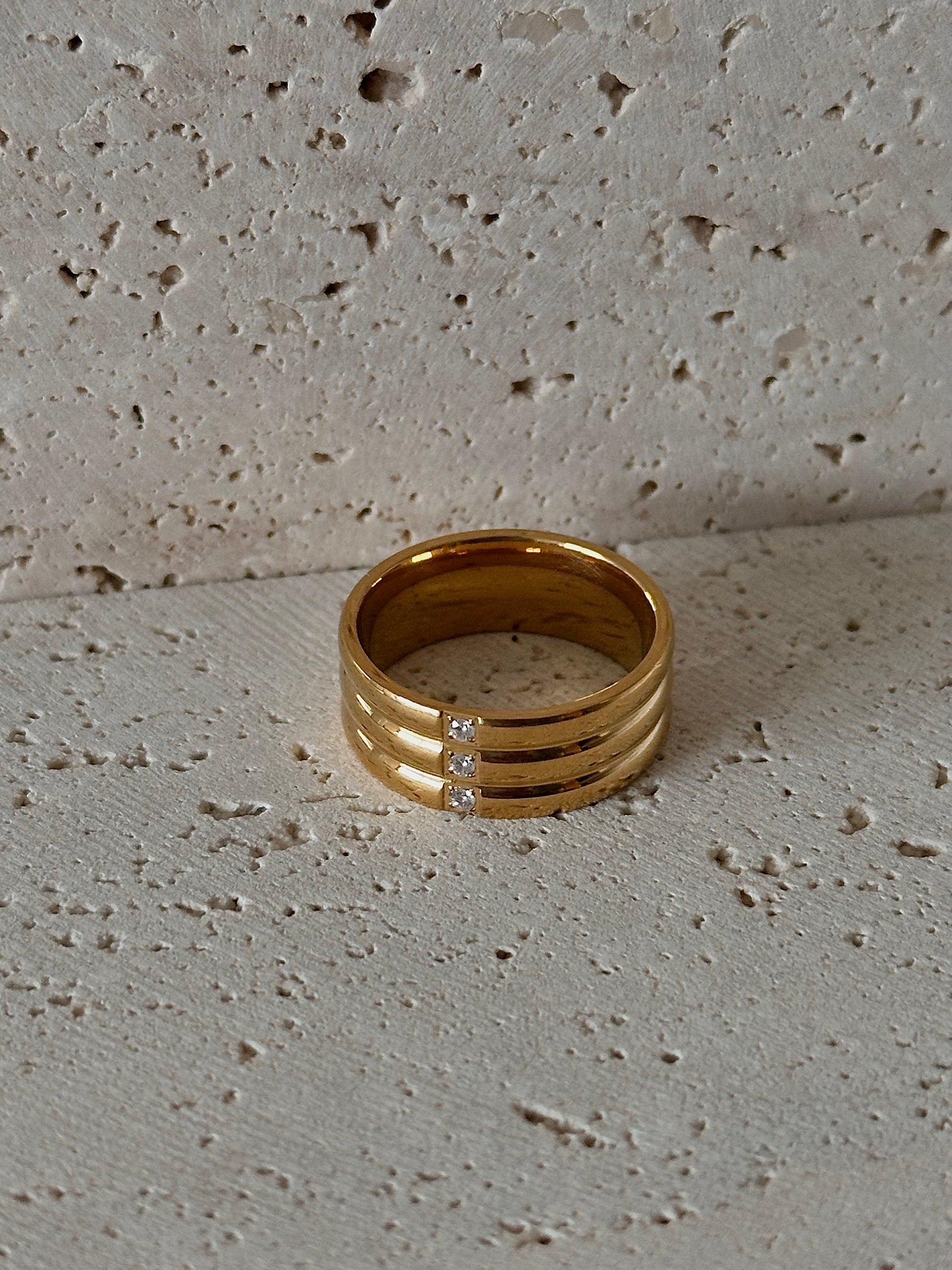 The Level Up Ring will elevate your style game with its triple dome band design. Adorned with a mini cz gold accent, this ring is sure to make a statement!